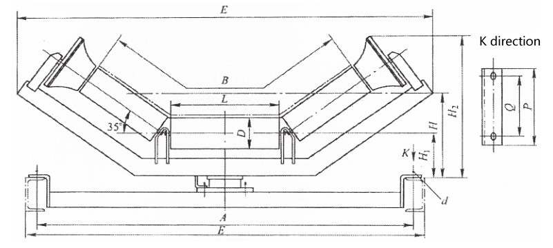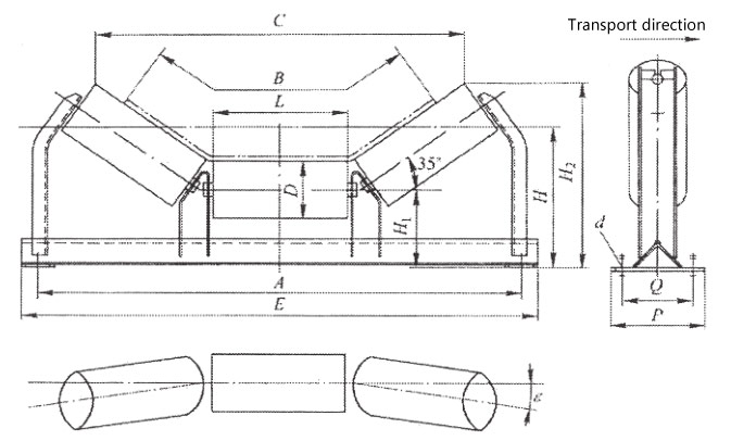 3.8 10°, ±5°transition idler with adjustable trough angle