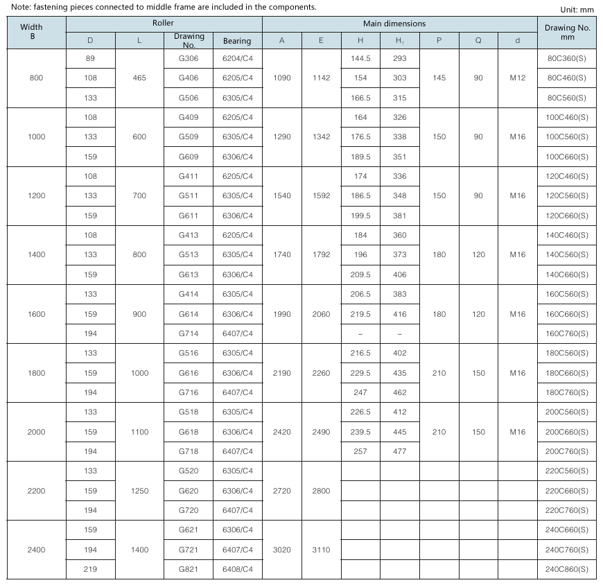 Requirement for drum surface: all are cast rubber surface. Drawing No. with “Y” as postfix refers to right-direction herringbone, with “Z” as postfix refers to left-direction herringbone, with “YZ” as postfix refers to diamond shape (omissible).